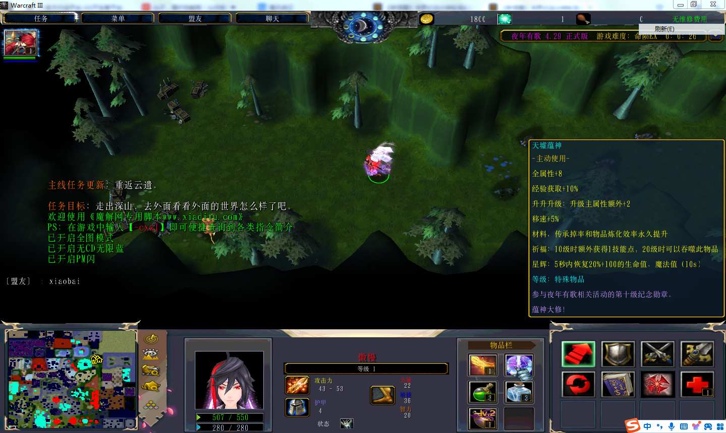 地图名字:夜年有歌4.3.0地图下载+全商城特权+全存档+隐藏英雄+无CD+指令功能