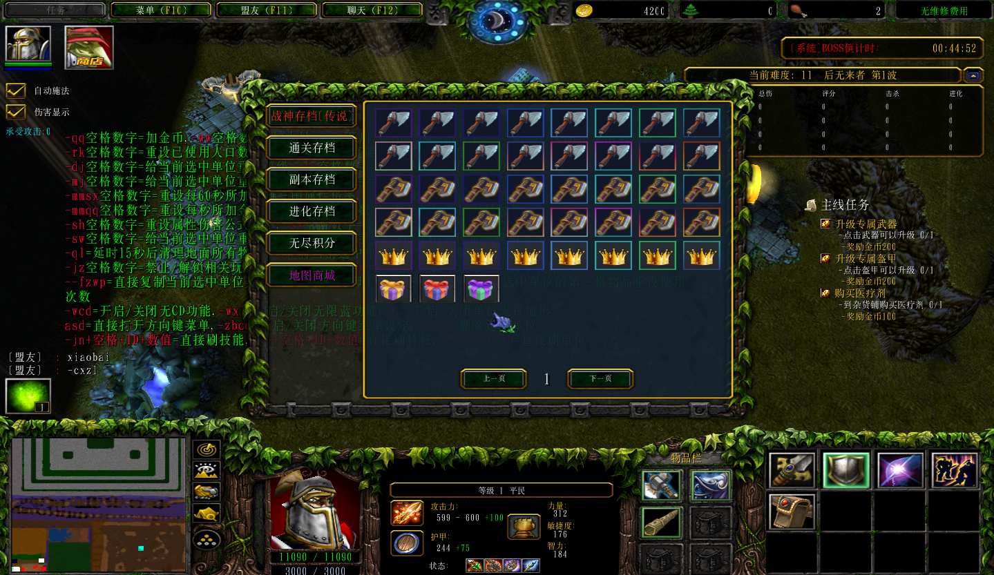 地图名字:男人无限进化2 1.0.11地图下载+无CD无限蓝P闪+商城特权+刷物品+指令功能