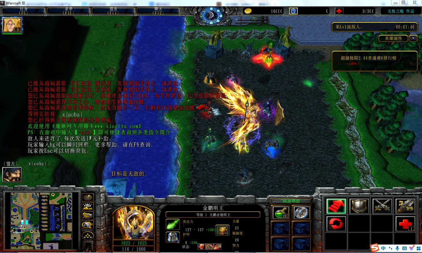 | 技能菜单【光环类技能】 | 自动化菜单【自动加钱木,提升英雄三围】 |