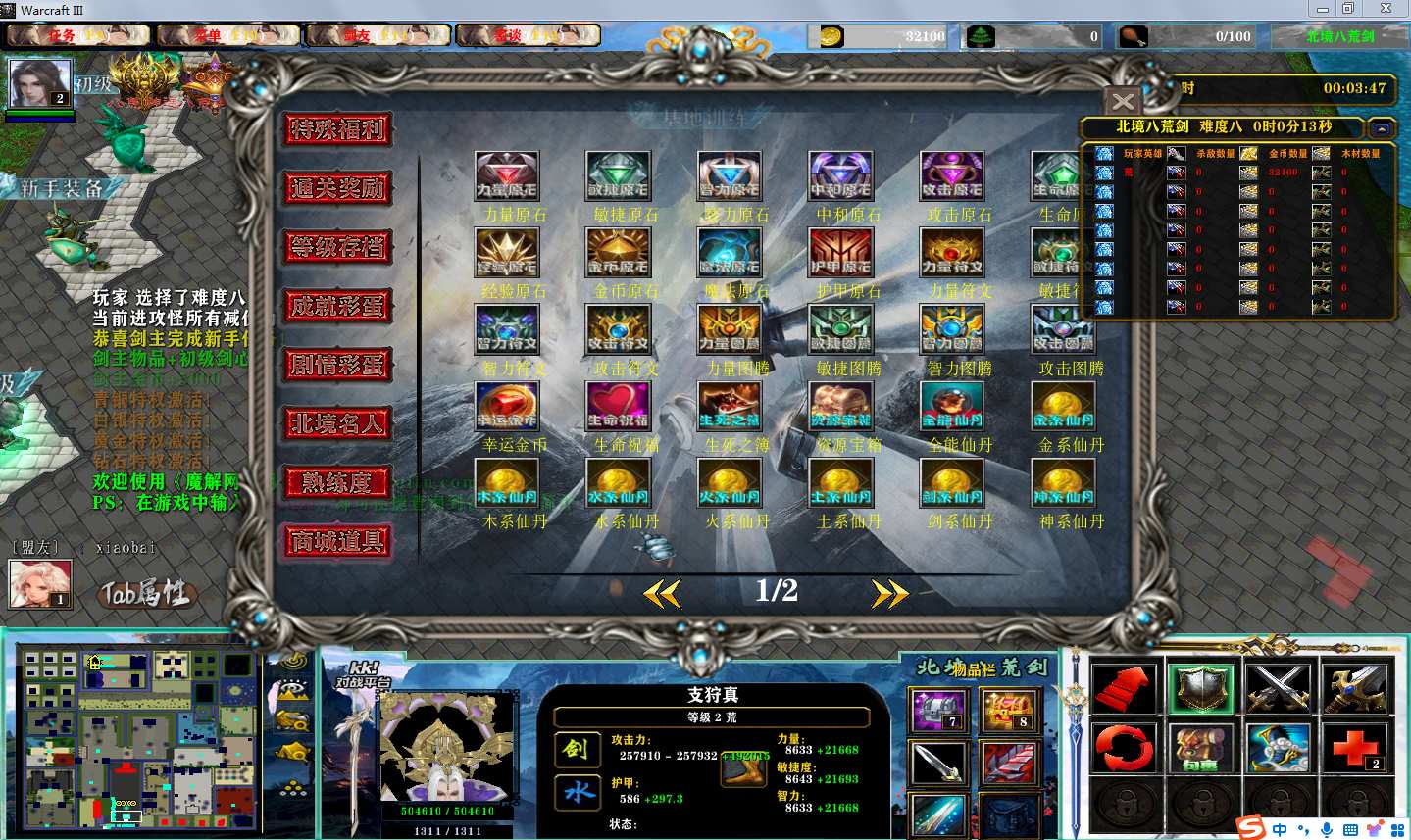 地图名字:北境八荒剑1.3.3地图下载+无CD无限蓝P闪+商城特权+刷物品+指令功能