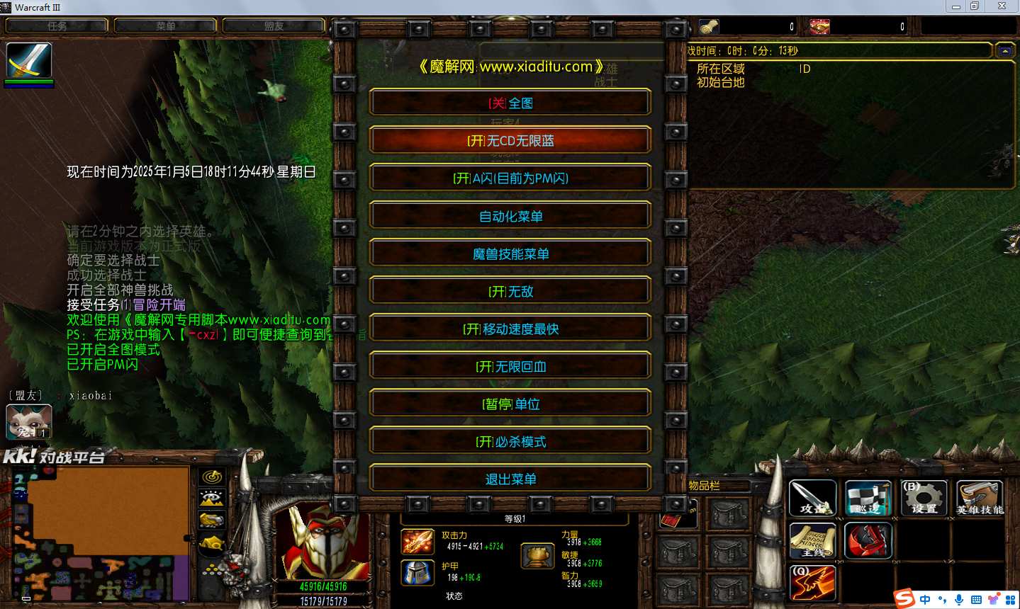 旧日传说1.2.15地图下载+无CD无限蓝P闪+商城特权+刷物品+指令功能: