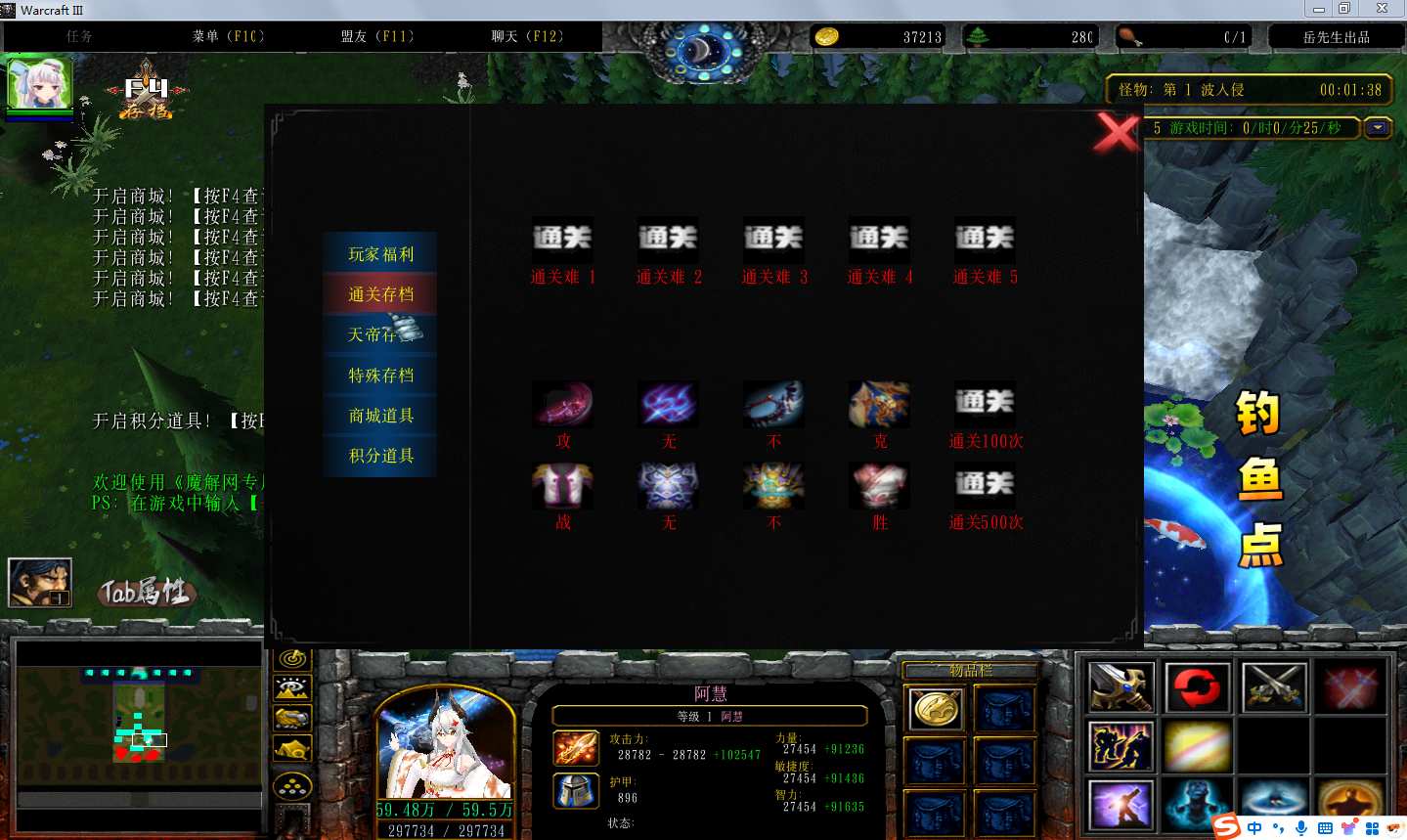地图名字:防守天花板1.0.130地图下载+全商城特权+全存档+隐藏英雄+无CD+指令功能