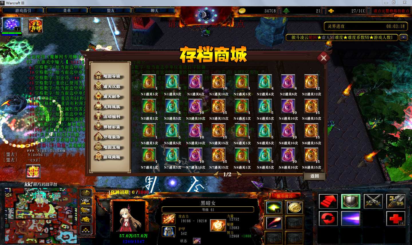 地图名字:傲斗凌云轮回1.0.9地图下载+全商城特权+全存档+隐藏英雄+无CD+指令功能