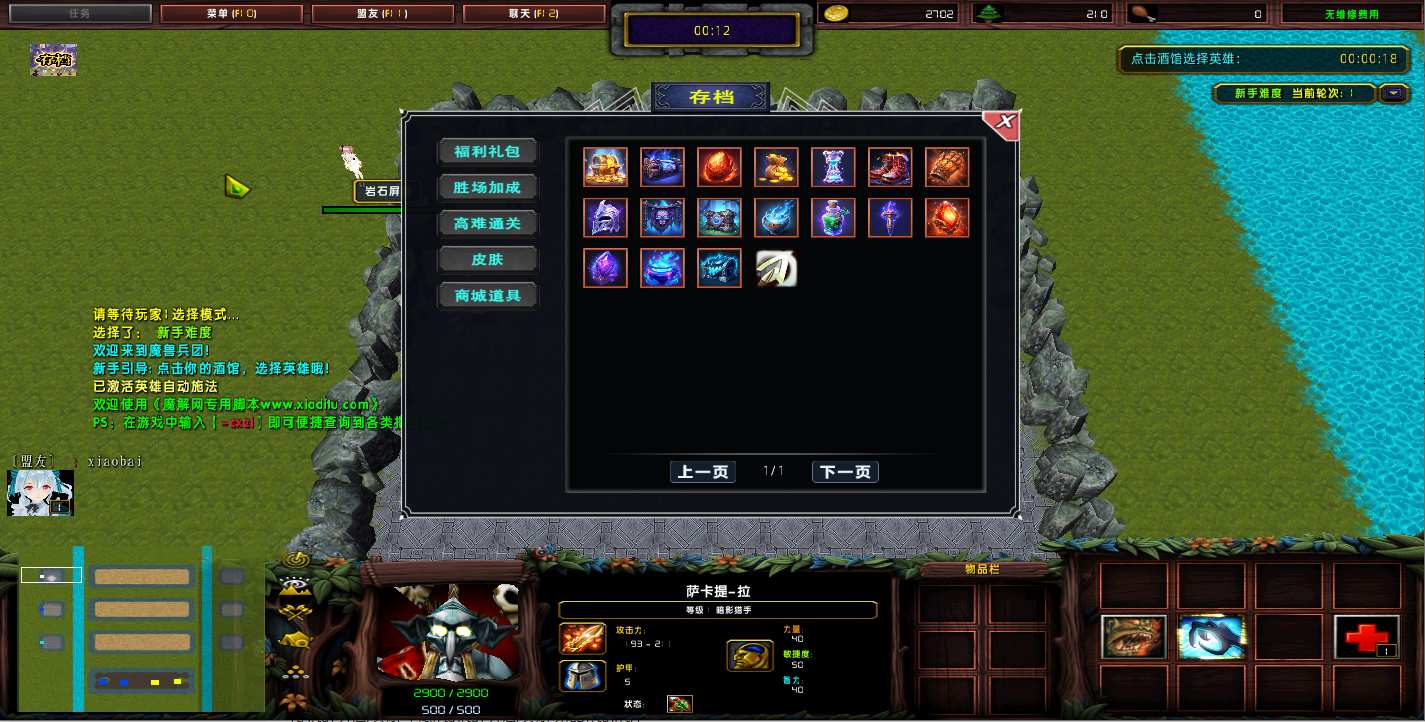 | 技能菜单【光环类技能】 | 自动化菜单【自动加钱木,提升英雄三围】 |
