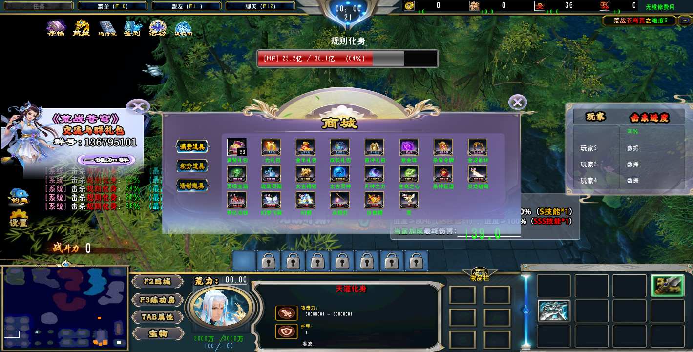 地图名字:荒战苍穹1.0.15地图下载+无CD无限蓝P闪+商城特权+刷物品+指令功能