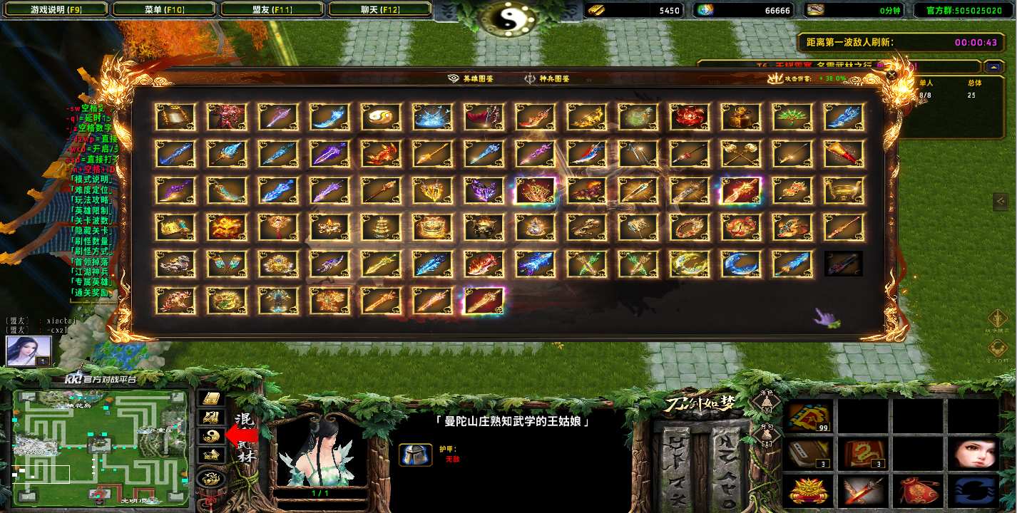 地图名字:混乱武林TD刀剑如梦7.0.17地图下载+全商城特权+全存档+隐藏英雄+无CD+指令功能