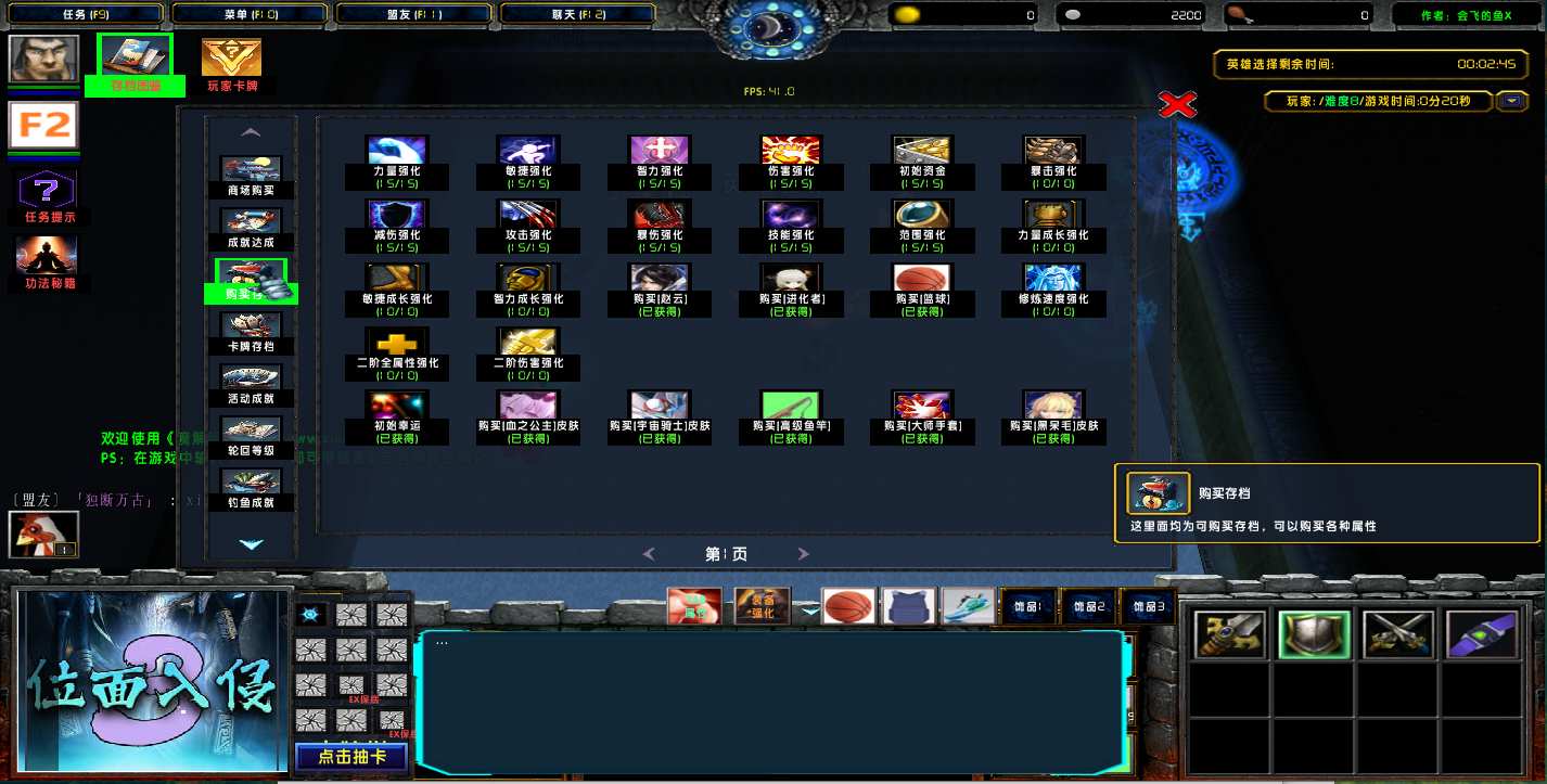 地图名字:位面入侵3 1.2.6地图下载+全商城特权+全存档+隐藏英雄+无CD+指令功能