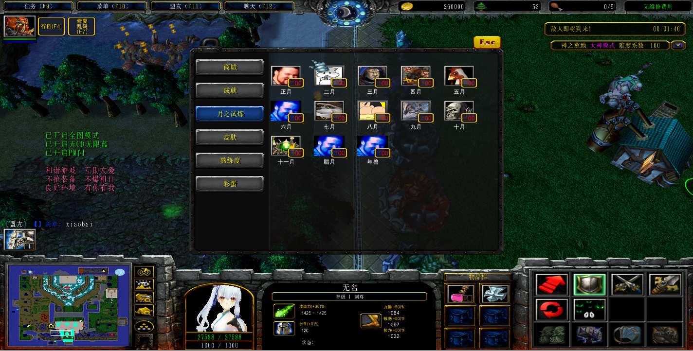 地图名字:神之墓地2.9.134地图下载+全商城特权+全存档+隐藏英雄+无CD+指令功能