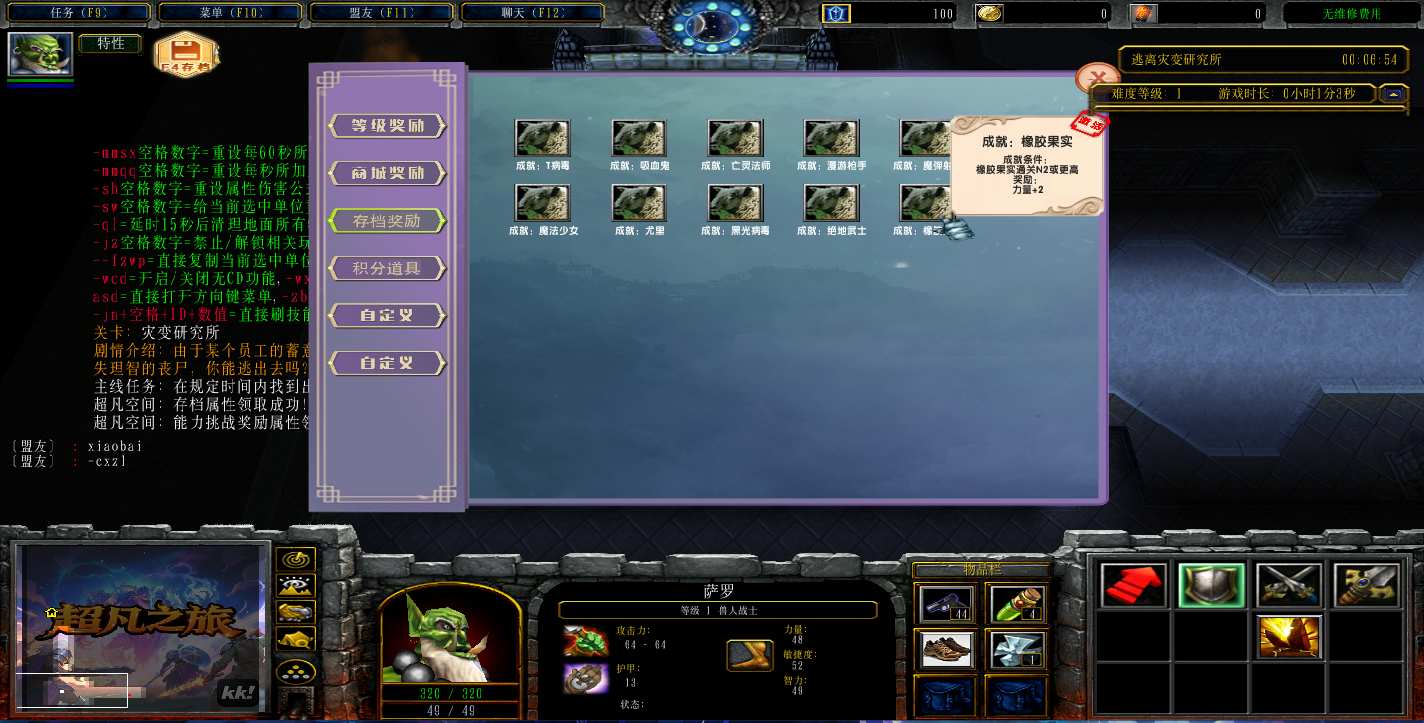 地图名字:超凡之旅1.0.36地图下载+全商城特权+全存档+隐藏英雄+无CD+指令功能