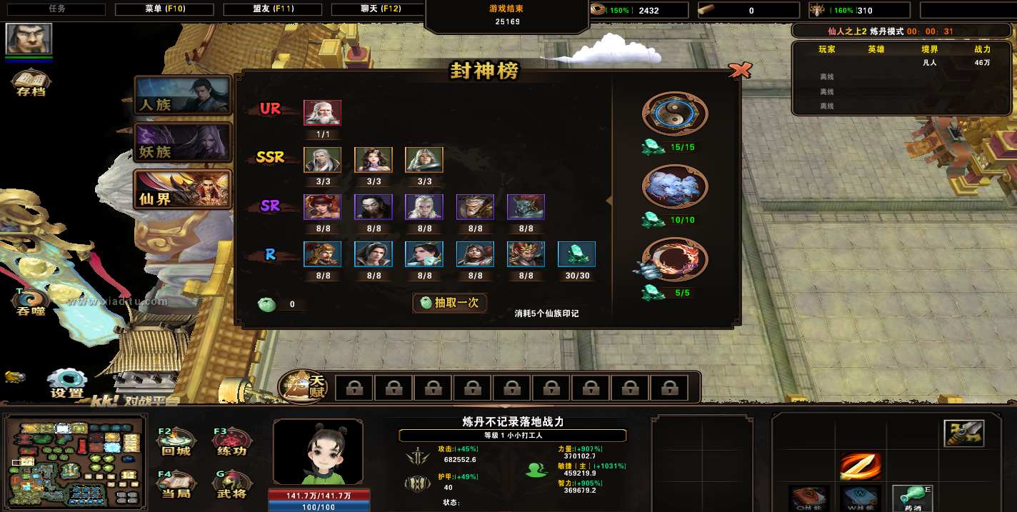 地图名字:仙人之上2 1.0.38地图下载+全商城特权+全存档+隐藏英雄+无CD+指令功能
