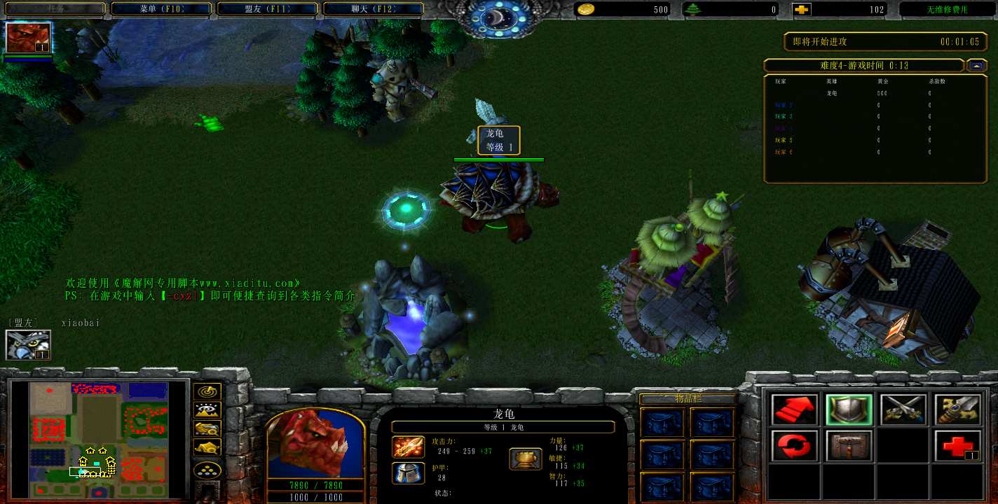 地图名字:野怪防守3 1.0.14地图下载+无CD无限蓝P闪+商城特权+刷物品+指令功能