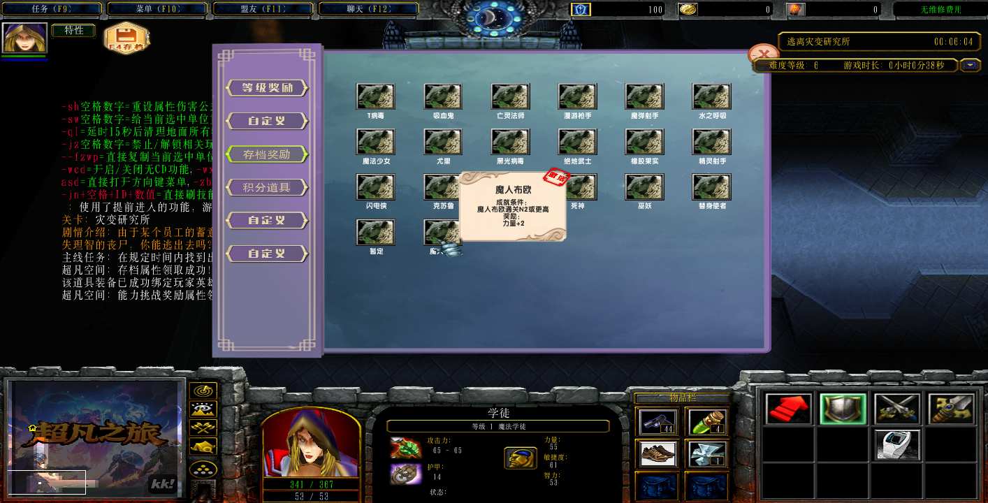地图名字:超凡之旅1.0.38地图下载+全商城特权+全存档+隐藏英雄+无CD+指令功能