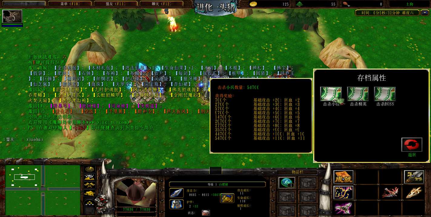 地图名字:进化一头猪3 1.0.6地图下载+全商城特权+全存档+无CD+指令功能