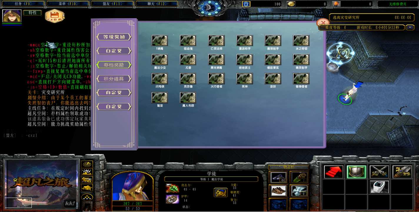 地图名字:超凡之旅1.0.40地图下载+全商城特权+全存档+隐藏英雄+无CD+指令功能