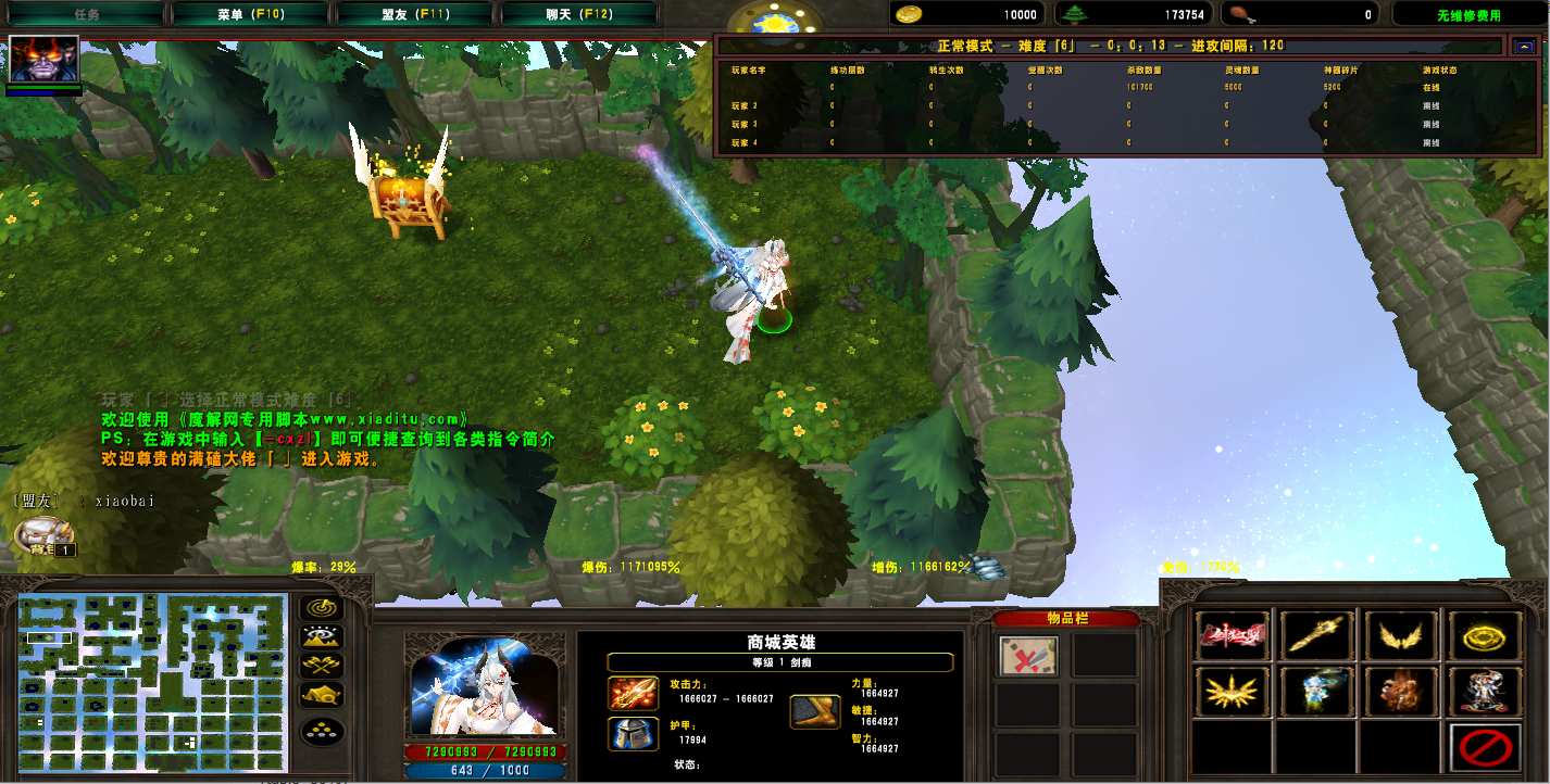 地图名字:剑与九州1.0.1地图下载+无CD无限蓝P闪+商城特权+刷物品+指令功能