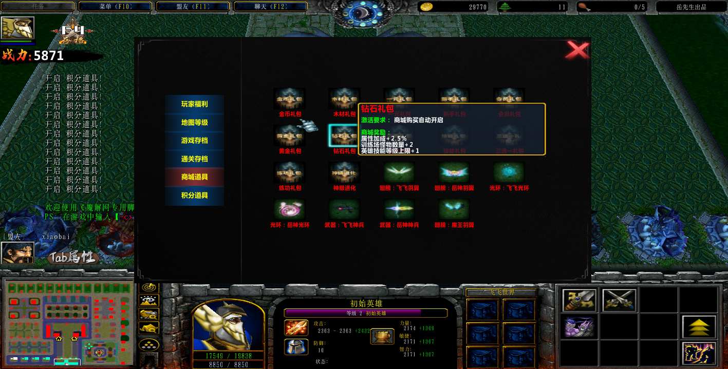 地图名字:飞飞世界2 1.0.104地图下载+无CD无限蓝P闪+商城特权+刷物品+指令功能