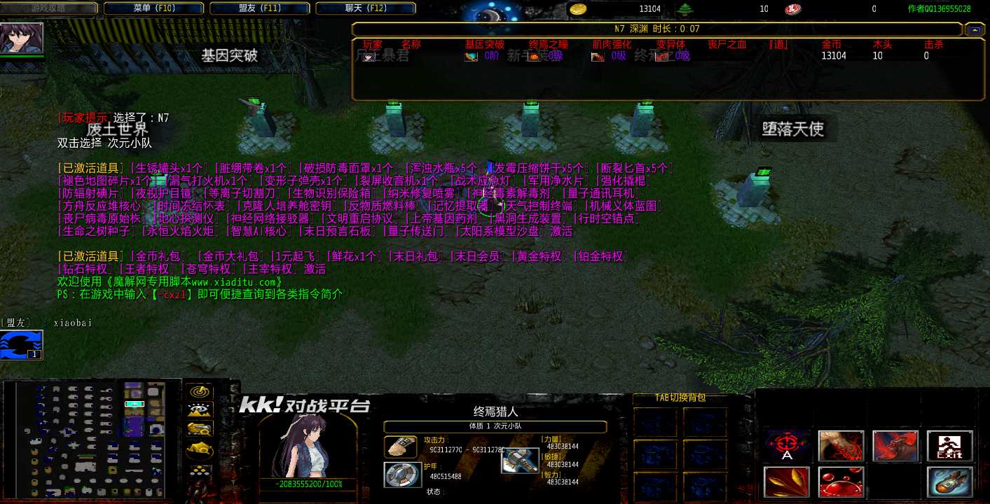 地图名字:末日修神1.0.14地图下载+无CD无限蓝P闪+商城特权+刷物品+指令功能