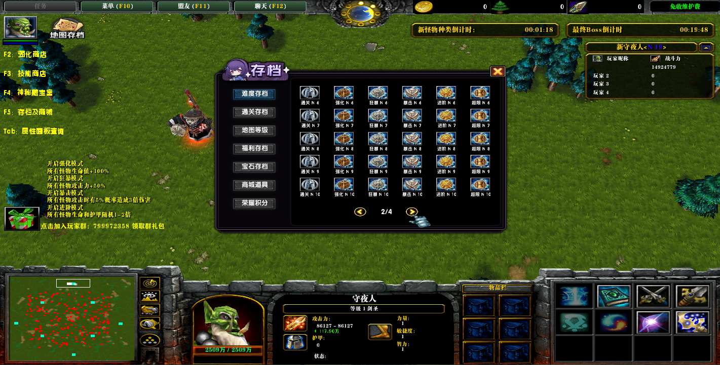 地图名字:新守夜人V1.5.3地图下载+全商城特权+全存档+无CD+指令功能