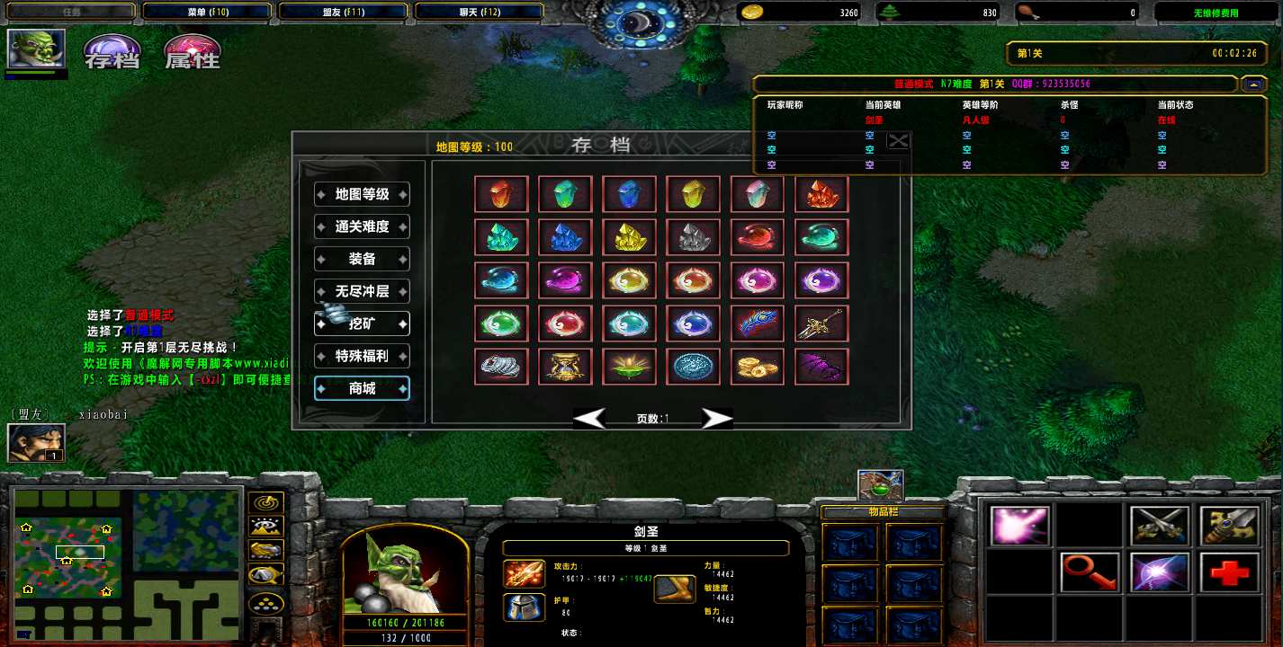 剑圣刷箱1.0.4地图下载+无CD无限蓝P闪+商城特权+刷物品+指令功能: