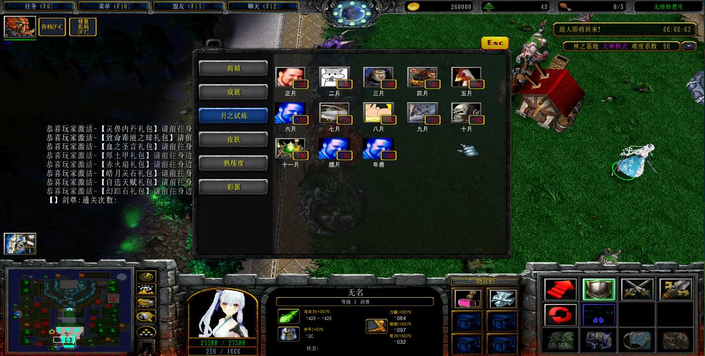 地图名字:神之墓地2.9.140地图下载+全商城特权+全存档+隐藏英雄+无CD+指令功能