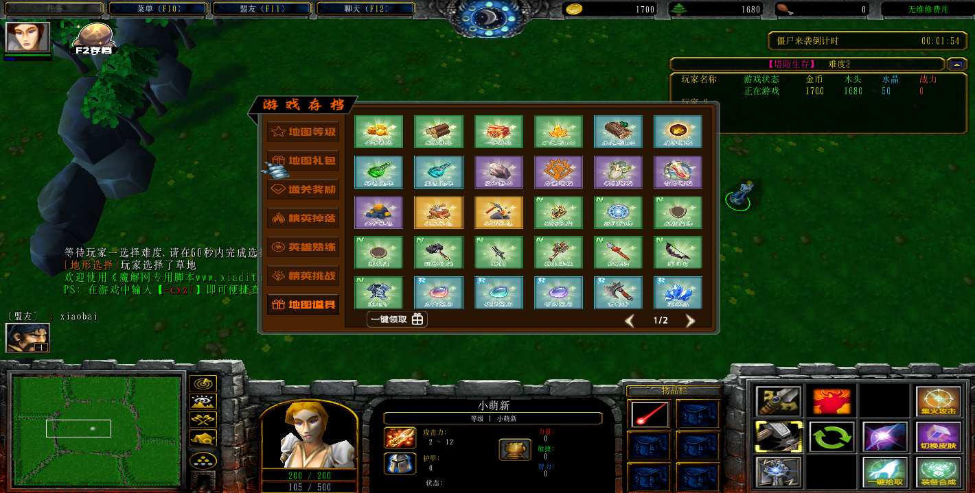 地图名字:塔防生存1.0.1地图下载+无CD无限蓝P闪+商城特权+刷物品+指令功能