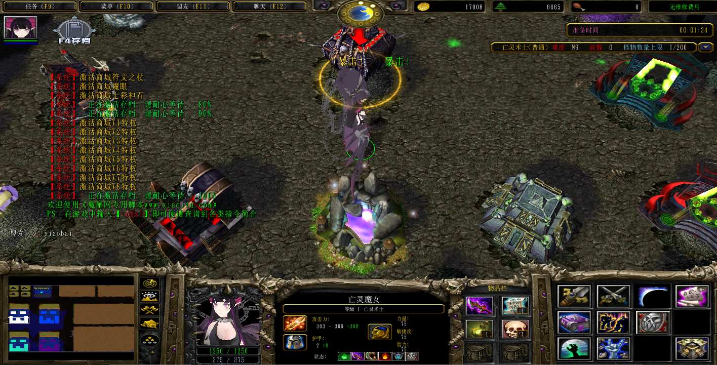 地图名字:亡灵术士1.0.14地图下载+无CD无限蓝P闪+商城特权+刷物品+指令功能
