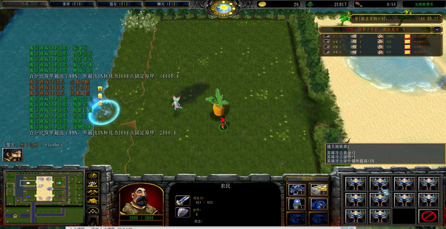 地图名字:拔萝卜生存1.0.61地图下载+全商城特权+全存档+无CD+指令功能