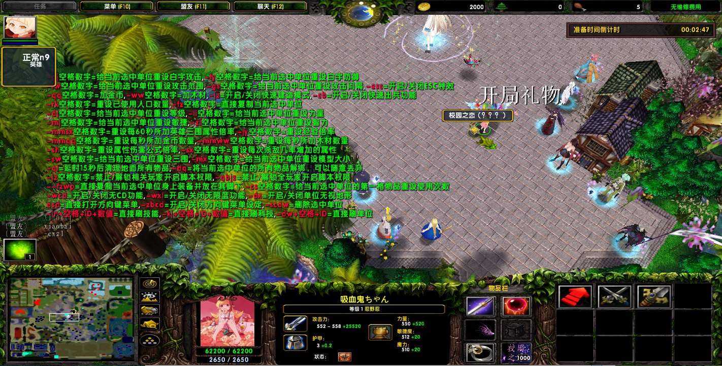 地图名字:校园修神录Ⅲ-3.8.72地图下载+赞助特权+隐藏英雄+无CD+指令功能