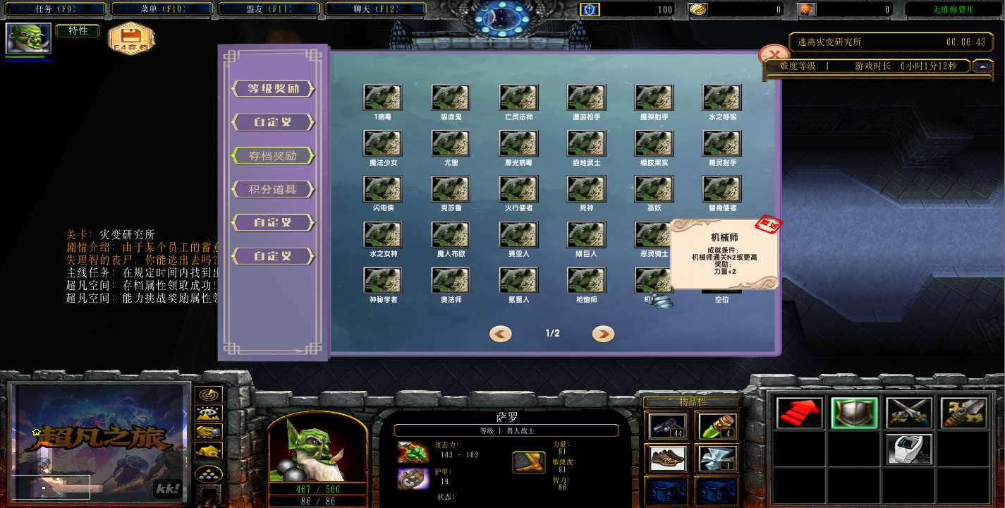 地图名字:超凡之旅1.0.56地图下载+全商城特权+全存档+隐藏英雄+无CD+指令功能