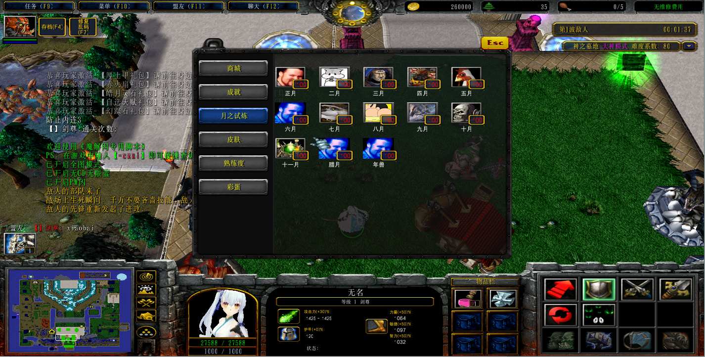 地图名字:神之墓地2.9.145地图下载+全商城特权+全存档+隐藏英雄+无CD+指令功能