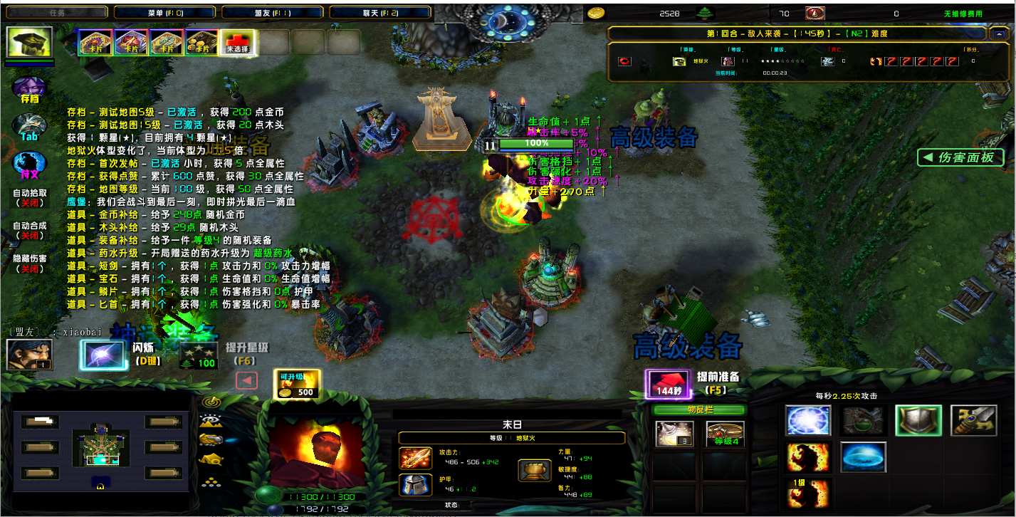| 技能菜单【光环类技能】 | 自动化菜单【自动加钱木,提升英雄三围】 |