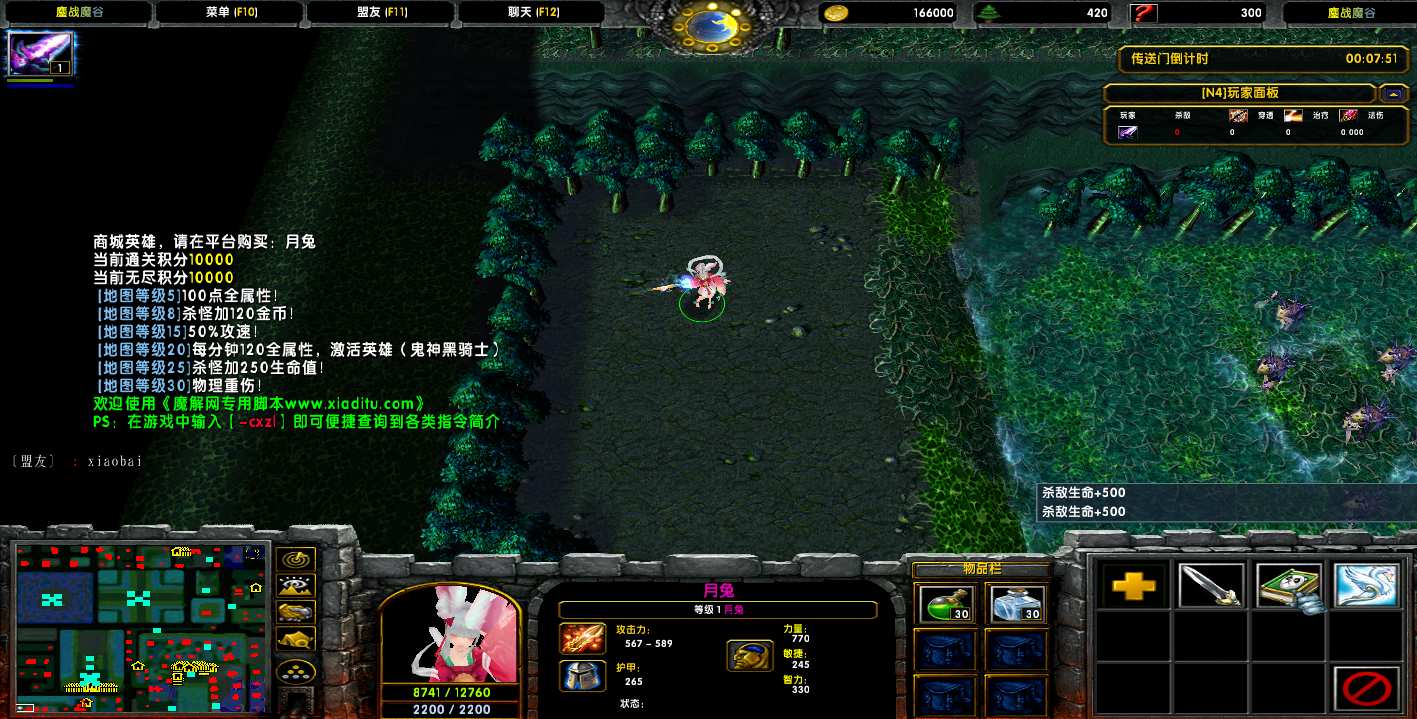 地图名字:鏖战魔谷1.2.6地图下载+全商城特权+全存档+隐藏英雄+无CD+指令功能