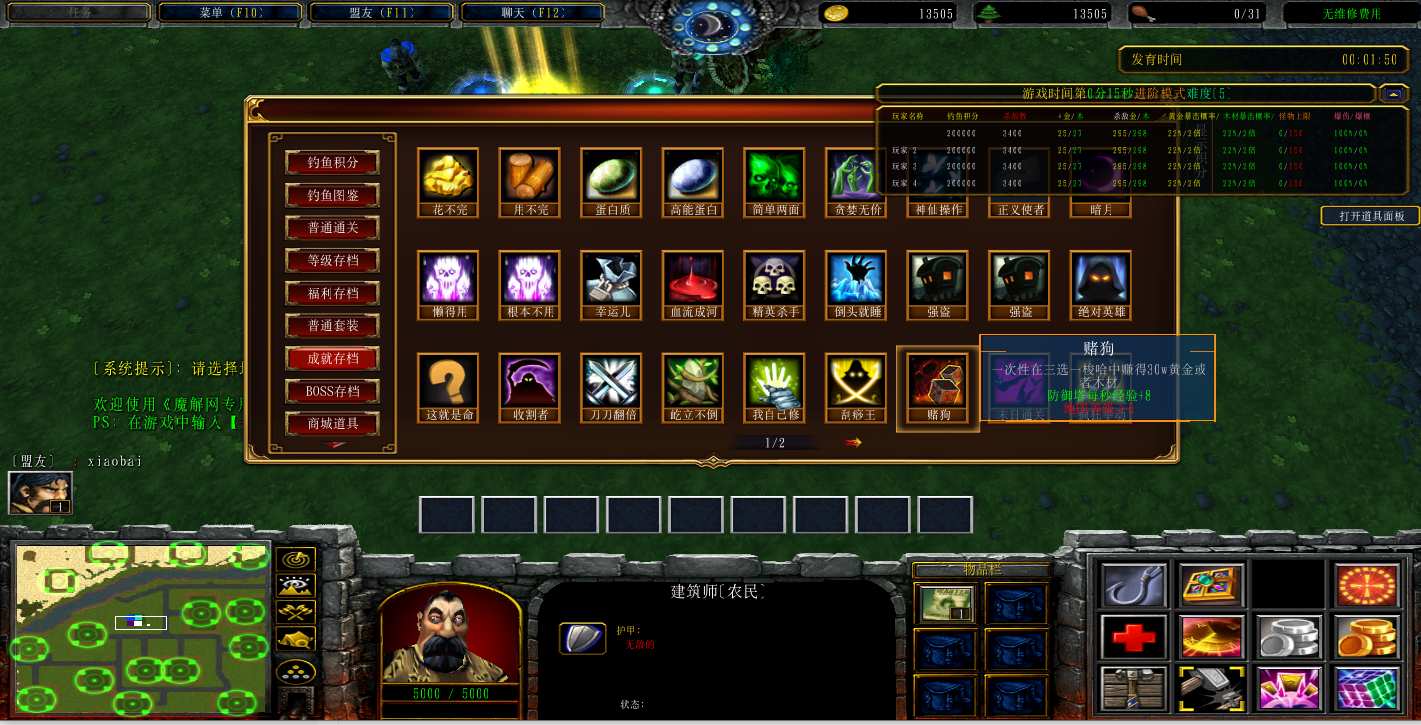 地图名字:随机合成生存1.8.0地图下载+全商城特权+全存档+无CD+指令功能