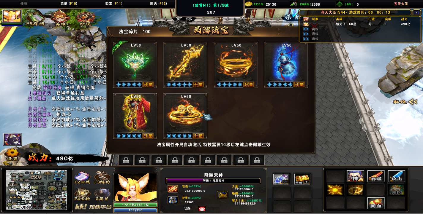地图名字:齐天大圣1.0.311地图下载+全商城特权+全存档+隐藏英雄+无CD+指令功能