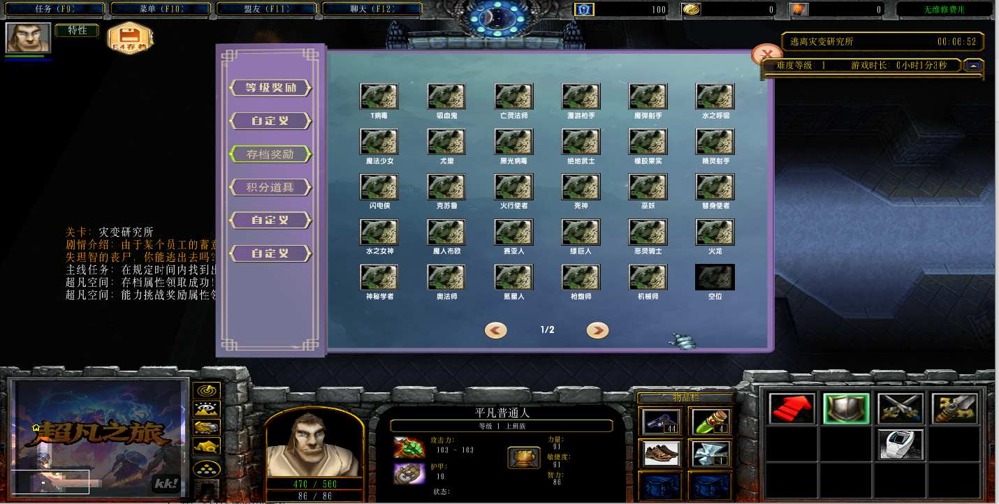 地图名字:超凡之旅1.0.59地图下载+全商城特权+全存档+隐藏英雄+无CD+指令功能
