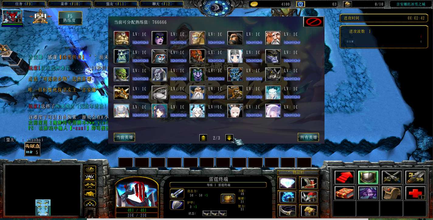 地图名字:吉安娜的冰雪之城2.1.5地图下载+全商城特权+全存档+隐藏英雄+无CD+指令功能