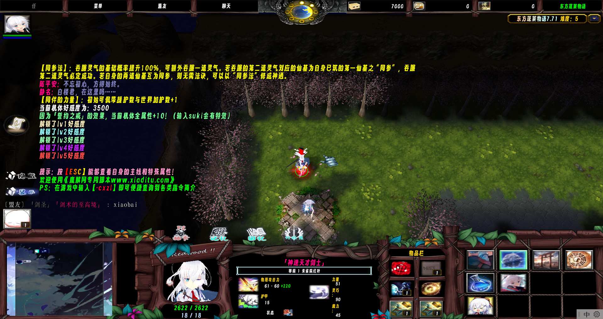 地图名字:蓬莱之旅7.7.1地图下载+全商城特权+全存档+隐藏英雄+无CD+指令功能