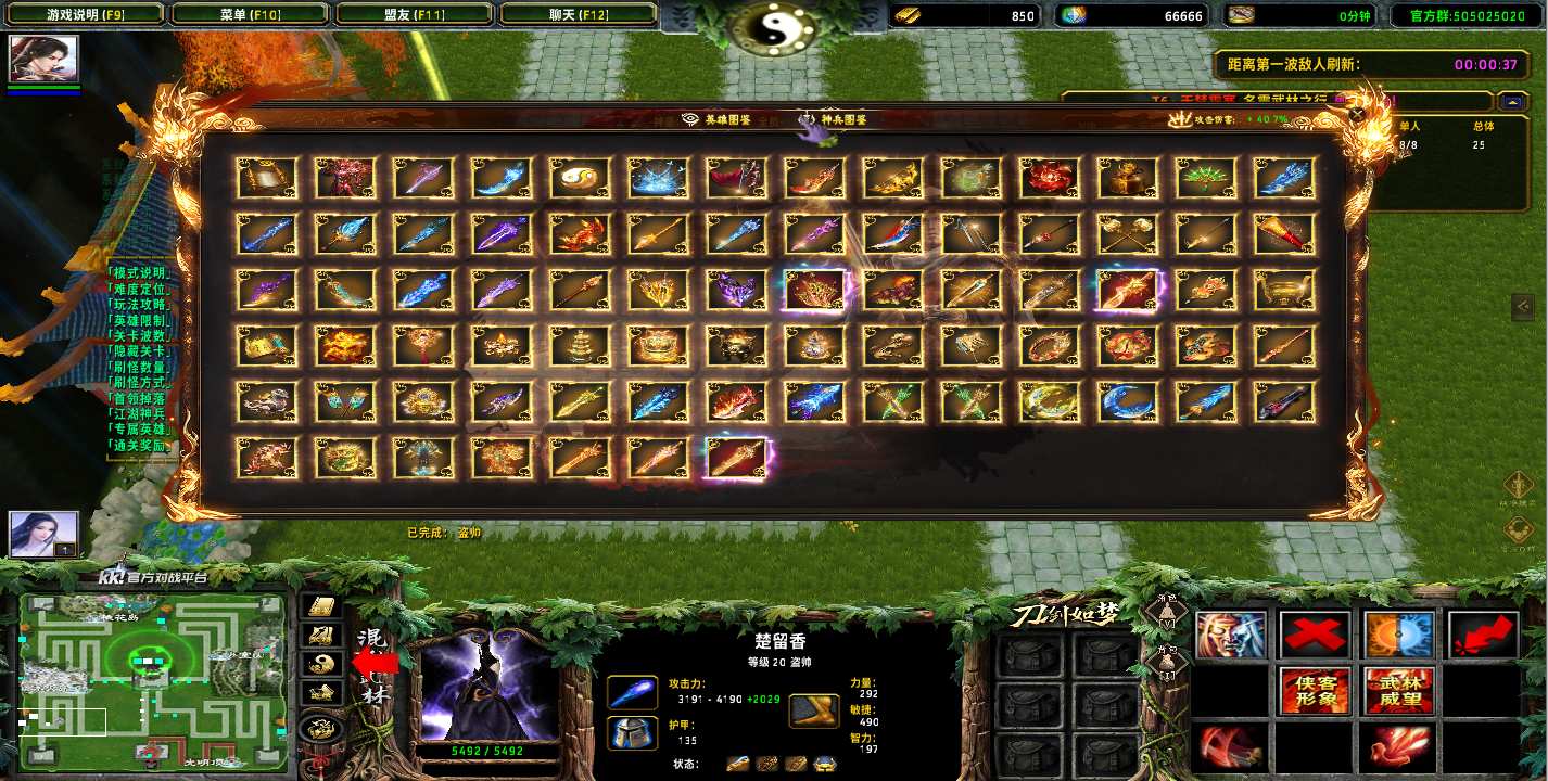 地图名字:混乱武林TD刀剑如梦7.0.35地图下载+全商城特权+全存档+隐藏英雄+无CD+指令功能
