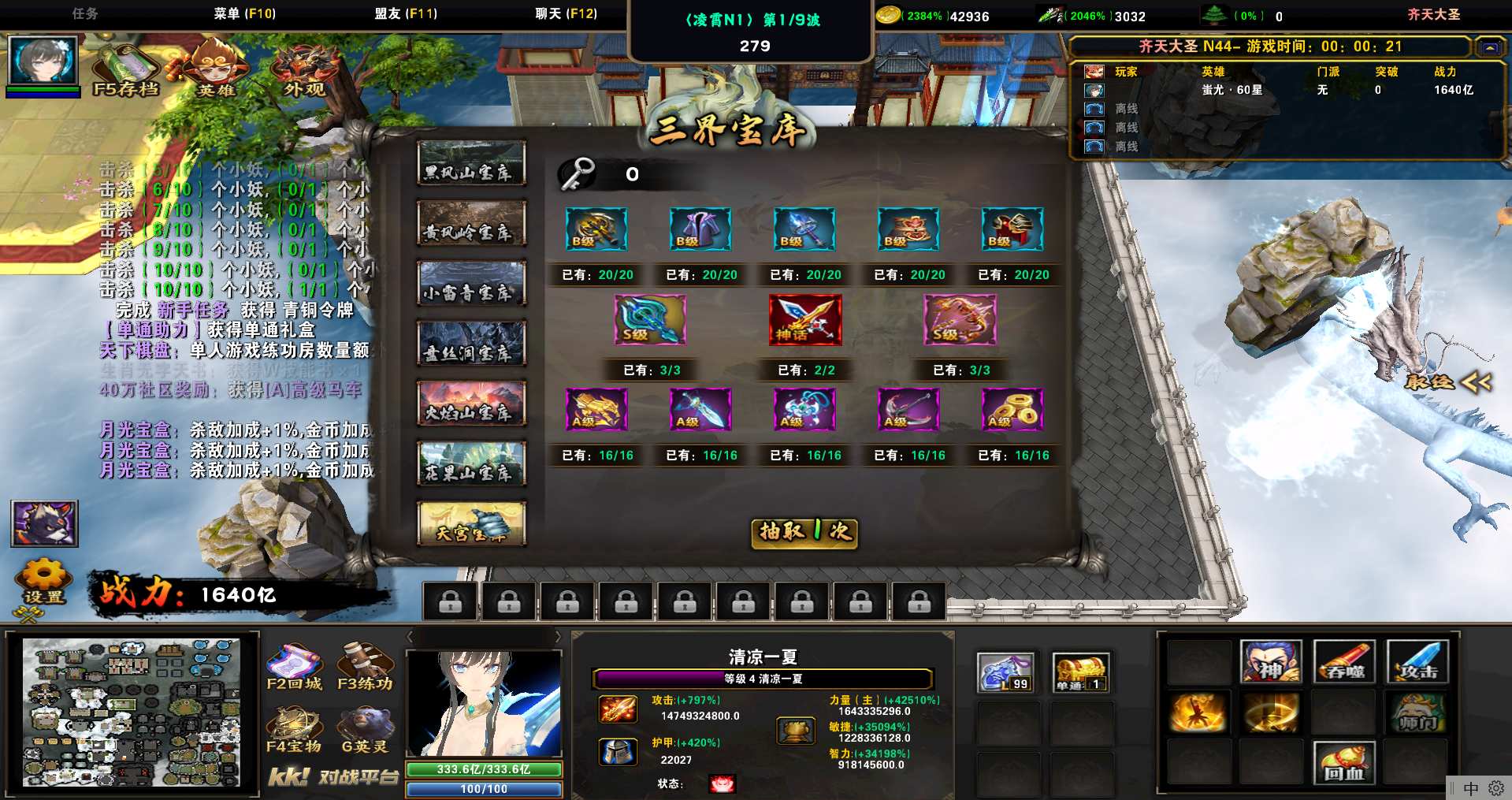 地图名字:齐天大圣1.0.313地图下载+全商城特权+全存档+隐藏英雄+无CD+指令功能