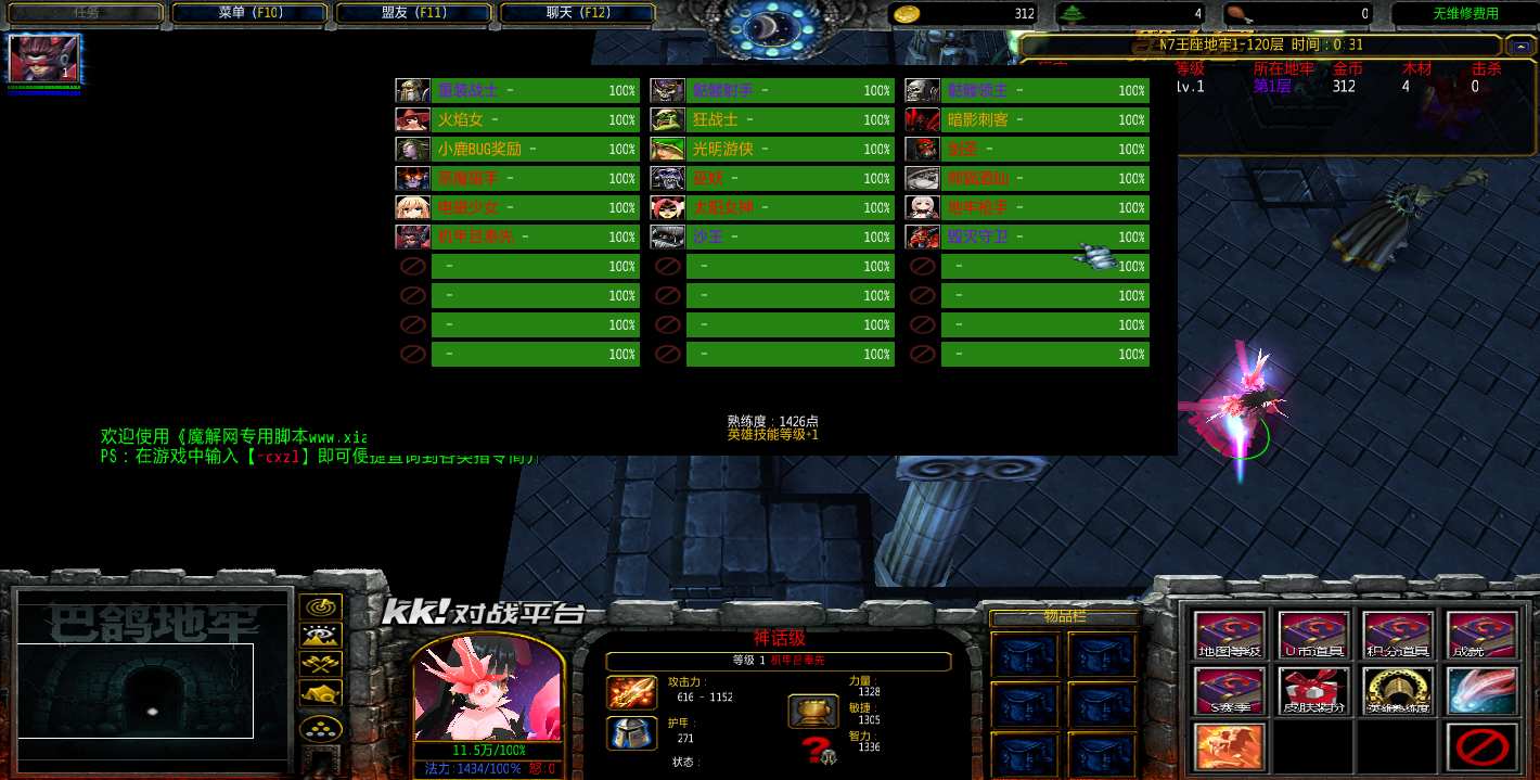 地图名字:巴鸽地牢1.0.56地图下载+全商城特权+存档+隐藏英雄+无CD+指令功能
