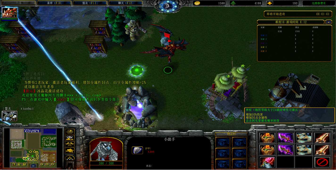 地图名字:野怪防守3 1.0.71地图下载+全商城特权+全存档+隐藏英雄+无CD+指令功能
