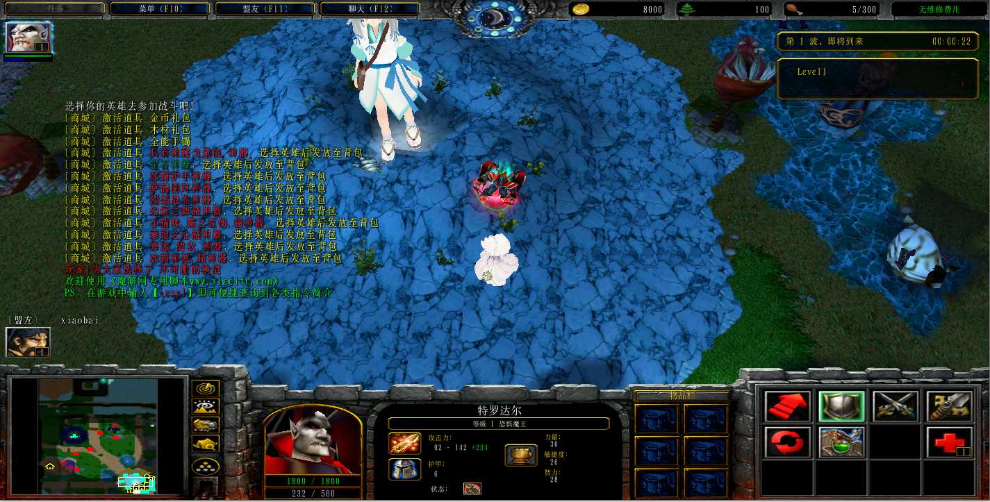 地图名字:超级困难守护女神1.0.76地图下载+无CD无限蓝P闪+商城特权+刷物品+指令功能