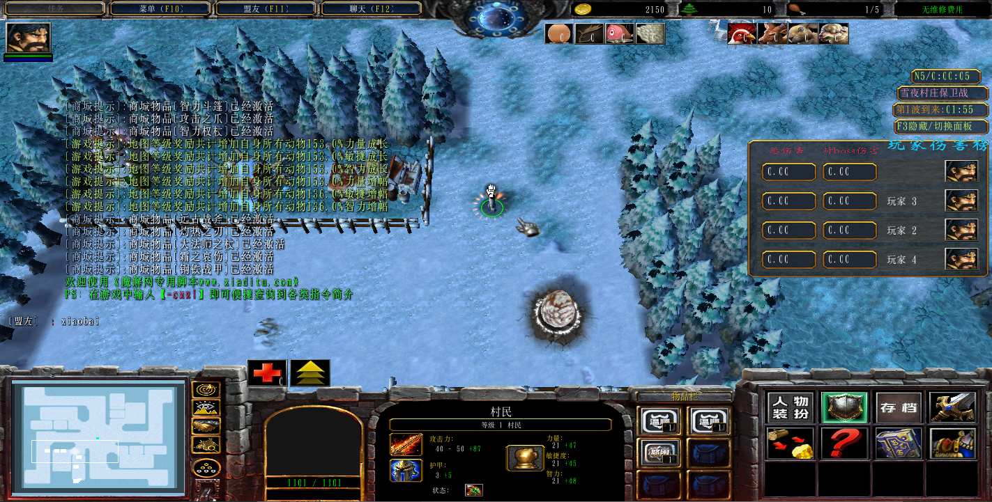 地图名字:雪夜村庄保卫战2 1.1.10地图下载+无CD无限蓝P闪+商城特权+刷物品+指令功能