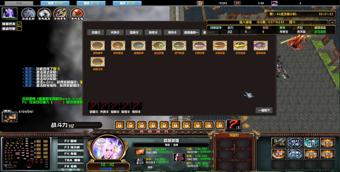 地图名字:仙人修仙1.0.4地图下载+无CD无限蓝P闪+商城特权+刷物品+指令功能