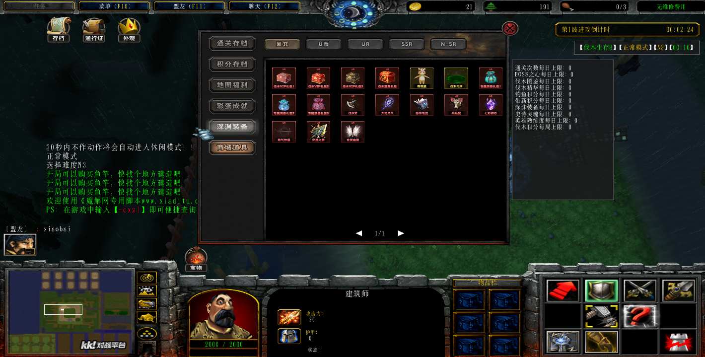 地图名字:伐木生存3 1.0.16地图下载+无CD无限蓝P闪+商城特权+刷物品+指令功能