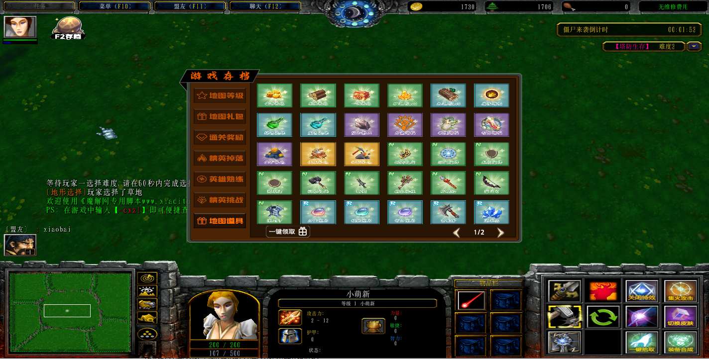 地图名字:塔防生存1.1.6地图下载+无CD无限蓝P闪+商城特权+刷物品+指令功能