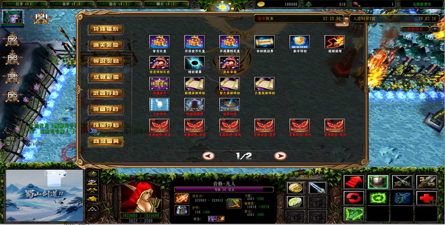 地图名字:蜀山剑道II 1.1.1地图下载+无CD无限蓝P闪+商城特权+刷物品+指令功能