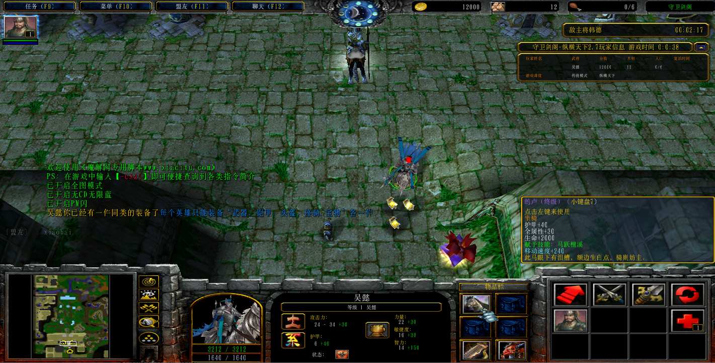 地图名字:守卫剑阁纵横天下2.7_5.2b地图下载+全商城特权+隐藏英雄+无CD+指令功能