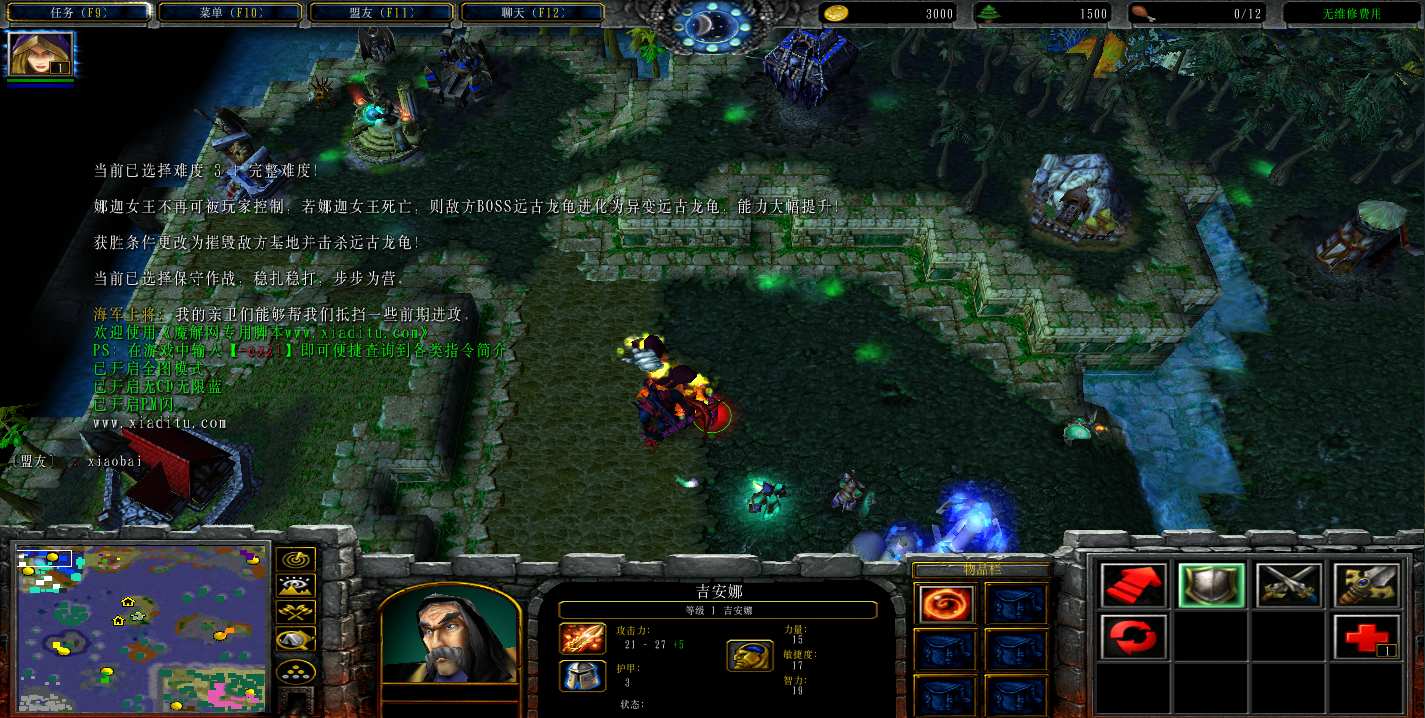 地图名字:离海群岛三人战役1.0.2地图下载+无CD无限蓝P闪+刷物品+指令功能