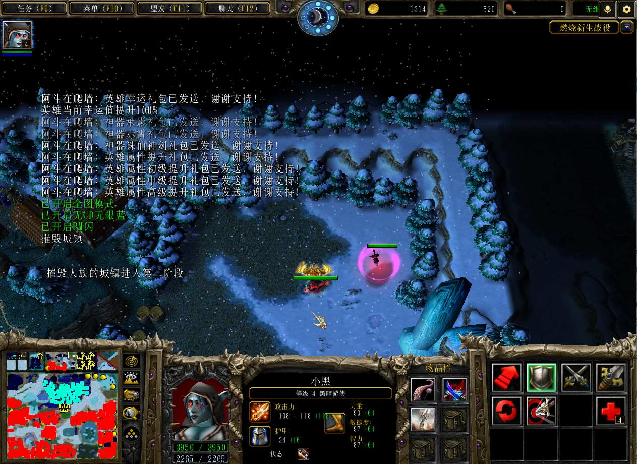 地图名字:四人战役燃烧新生三1.0.0地图下载+无CD无限蓝P闪+商城特权+刷物品+指令功能